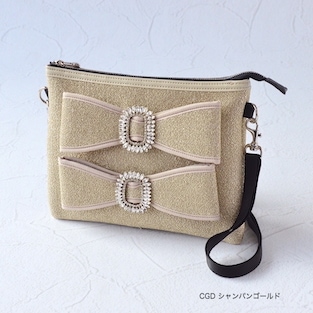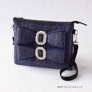 ラグジュアリーに輝くオリジナルのメタリック生地に煌めくビジューの飾りがスタイリングを華やかに彩ります。